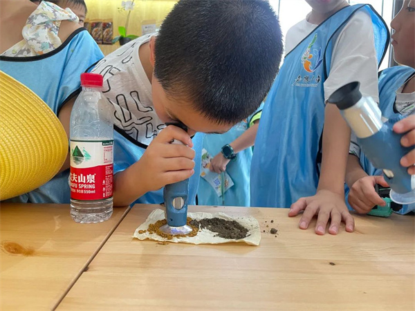 蘇坪村古兒壩是市中區(qū)遠近聞名的香蔥種植基地。同學們在基地的香蔥地里,學習了如何栽種小蔥。在香蔥文化博物館,聽工作人員介紹了香蔥的種植歷史、用途、營養(yǎng)價值等知識點,并用顯微鏡觀察了普通土壤和種植香蔥的土壤有什么區(qū)別。還進行了撈魚、寫信等有趣的活動。豐富的活動內容讓孩子們對香蔥種植產生了濃的興趣,也在勞動實踐中收獲了許多快樂。