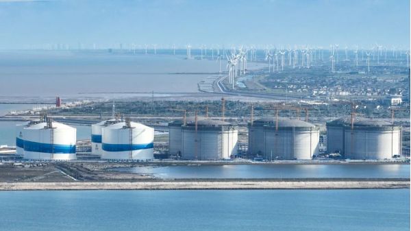 中海油鹽城“綠能港”一期擴建工程項目部經理任建勛說,鹽城“綠能港”一期項目4個LNG儲罐已投產運營,6個全球最大的液化天然氣儲罐正在緊鑼密鼓建設中。該項目全部建成投運后,總罐容將達250萬立方米,為國內最大的液化天然氣儲備基地。