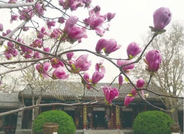古城飛花春來早,踏青賞花正當時。在紅墻碧瓦的映襯下,正定榮國府內一枝枝柳綠花紅竟顯得如此脫俗,從中品出千年的韻味。