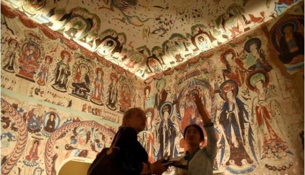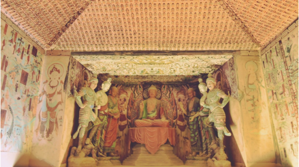 莫高窟,坐落于河西走廊的西部盡頭的敦煌。它的開鑿從十六國時(shí)期至元代,前后延續(xù)約1000年,這在中國石窟中絕無僅有。它既是中國古代文明的一個(gè)璀璨的藝術(shù)寶庫,也是古代絲綢之路上曾經(jīng)發(fā)生過的不同文明之間對(duì)話和交流的重要見證。