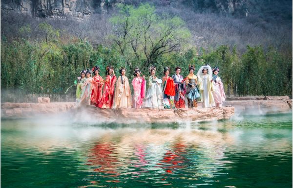 云臺山漢服花朝節還在景區打造了融入藝術、詩詞、水墨等元素的沉浸式國風藝術空間,以鮮明的藝術形式將寫意、入畫、展卷、探幽等一幕幕詩意場景生動呈現,動態描繪山脈流動、云霧水系、春染千山之勝景,讓來自全國各地的游客“步”入畫中,穿越古今,體驗畫中畫的奇妙觀感。