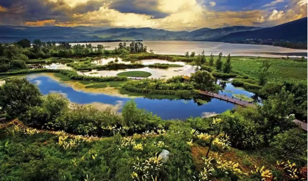 夢回田園位于邛海南岸,總面積4500畝,按功能分為五大區域:自然濕地恢復區、林灌鳥類棲息區、魚類種群恢復濕地區、農業濕地培育區、河口植被恢復區。