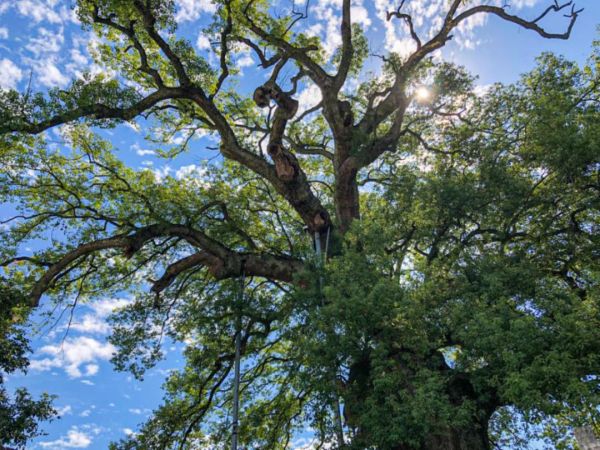 坐于樹(shù)下,頭頂枝繁葉茂