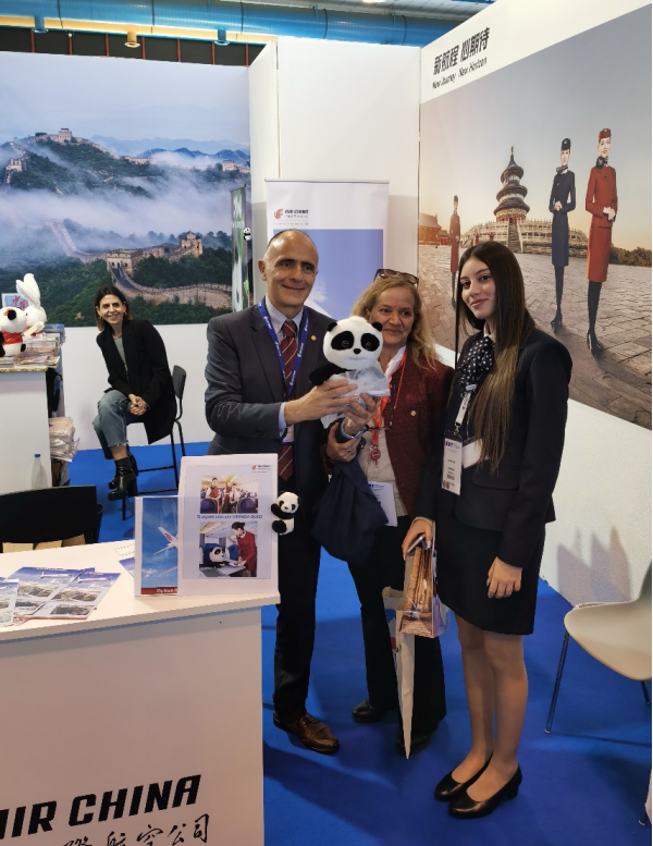 中國駐羅馬旅游辦事處攜手中國國際航空公司參加博覽會,聯合打造了“文旅+航空”綜合展臺,以航旅一體化推介形式向廣大意大利旅行商和游客發出“在春暖花開之時,暢游美麗中國”邀約。