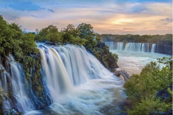 距離牡丹江市區僅百余公里。"鏡泊"意為"清平如鏡"。紅羅女的傳說為這里的山水倍添靈性,許多偉人的行蹤墨寶也給名湖增色不少。