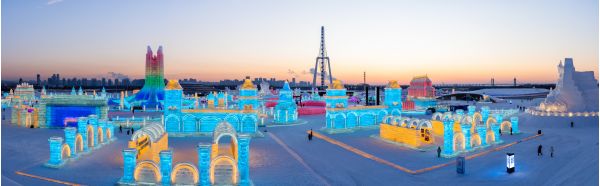 第24屆哈爾濱冰雪大世界以“冰雪之都、創意無限”為主題,引入“冰雪+”概念,通過“冰雪+創意”“冰雪+體驗”“冰雪+數字”“冰雪+藝術”,展現哈爾濱60年冰雪經濟發展成就,用冰雪語言展示哈爾濱的城市特質與資源稟賦。本屆哈爾濱冰雪大世界占據景區“C位”的主塔——冰雪之冠,高43米,相當于15層樓,用冰量1.1萬立方米,設計及施工難度均超過往屆。冰雪之冠由24根冰柱向上集聚而成,從高空俯瞰如同哈爾濱市市花“丁香花”,花瓣簇擁組成王冠形狀。主塔平臺則以八分音符為設計元素,代表著哈爾濱是擁有“音樂之都”美譽的城市。高高的雪花摩天輪讓游客從高空俯瞰冰雪大世界,盡覽松花江兩岸風光。一經亮相,立即成為新的網紅,每天爆滿。網紅超級冰滑梯全面升級,滑道增加到8道,長度也延長到500米,為歷屆最長,讓游客在風馳電掣中感受刺激。春節假期,哈爾濱冰雪大世界共接待游客18.45萬人次,日均接待游客超過2.64萬人次,農歷正月初四迎來客流高峰,單日接待游客達4.5萬人次。在第24屆哈爾濱冰雪大世界園區內,設計建造了景觀“冰雪史冊”,用一幅幅照片、一個個精彩瞬間為游客講述哈爾濱冰雪大世界景區23年蓬勃發展的故事,展示哈爾濱厚積60年的冰雪文化與魅力。感懷歷史,溫故知新。冰雪史冊以哈爾濱中央書店為原型進行二次創作,把哈爾濱60年的冰雪故事集中在4個展區里。太陽島雪博會:系列活動迎接盛典截至2月5日,第35屆中國·哈爾濱太陽島國際雪雕藝術博覽會累計游園人數約18萬人次。本屆雪博會以“冰雪之都夢雪奇緣”為主題,占地面積154萬平方米,其中主核心區130萬平方米,江上活動區24萬平方米,總用雪量10.5萬立方米,形成全新的“6+3”總體規劃布局,即“鯉魚躍龍門、圓夢啟程、奇幻穿越、雪冠博覽、熱雪部落、雪鄉冬趣”六大雪冠核心體驗區+“雪人儀仗隊、俄羅斯風情小鎮、江上拓展區”三大氛圍拓展區的主題園區景觀布局。