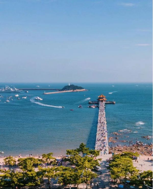 青島棧橋始建于清光緒十八年(1892年),是青島的重要標(biāo)志性建筑物和著名風(fēng)景游覽點(diǎn) ,據(jù)說棧橋是青島第一個碼頭 最初所為海軍碼頭,德國侵占青島后改為貨運(yùn)碼頭。青島棧橋全長440米,寬8米,鋼混結(jié)構(gòu),橋南端筑半圓形防波堤,堤內(nèi)建有民族形式的兩層八角樓,名"回瀾閣","飛閣回瀾"被譽(yù)為"青島十景"之一。來青島,在棧橋上喂喂海鷗,在落潮的時候站在礁石上走近大海,這里比任何一個有海的城市都多了一份歷史的韻味,感受這里的空氣和大海的味道,自然的放慢腳步,在喧囂的市井生活里, 這里是難得的愜意時光。棧橋沿岸,就是棧橋公園,離車站不是很遠(yuǎn),來青島的第一站便是這里,從青島站步行到棧橋,也不需要太長的時間,漫步棧橋海濱,游人如織,微風(fēng)徐徐,海鷗自由自在的飛過,游艇載著游客暢游碧海之中……感受青島的歷史韻味和美麗的風(fēng)景,駐足停留于棧橋,碧海藍(lán)天,直到黃昏,夜幕降臨,每一個時刻都是美的享受。