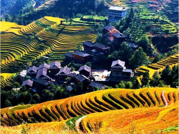 龍脊梯田龍脊梯田始建于元朝,如今成了彌足珍貴的世界遺產,分為金坑(大寨)瑤族梯田觀景區,平安壯族梯田觀景區,龍脊古壯寨梯田風景區