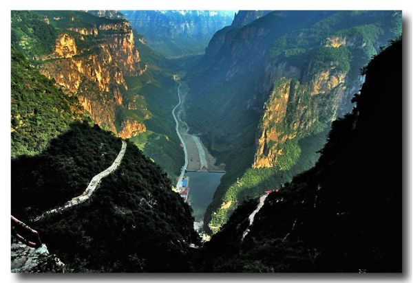 俯瞰全境,東西兩側山巒起伏,中間溝谷斷壁對峙,呈南北走向模臥其趾,由南往北漸次抬升,山峽珠聯恰如一條騰飛的翼龍。
