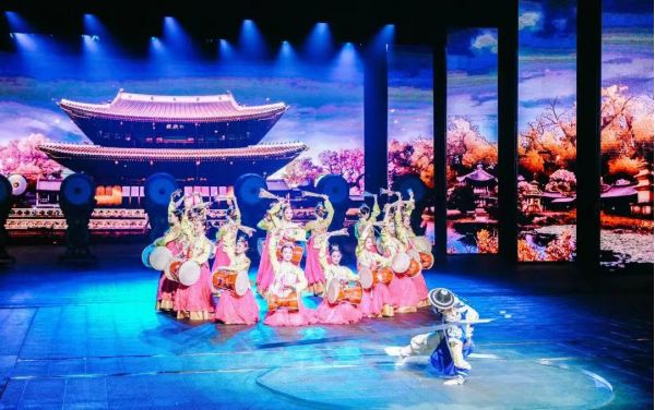 《宋城千古情》用先進聲、光、電的科技手段和舞臺機械,組合演繹了杭州這座古城早期良渚人的艱辛、宋皇宮的輝煌、岳家軍的慘烈、梁祝和白蛇許仙的千古絕唱,把絲綢、茶葉與煙雨江南表現得淋漓盡致,觀賞極具視覺沖擊和心靈的震撼。