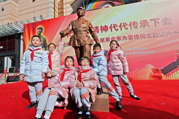 3月1日,由中國(guó)美術(shù)館、北京市東城區(qū)委、東城區(qū)人民政府共同主辦的“把雷鋒精神代代傳承下去—紀(jì)念毛澤東等老一輩革命家為雷鋒同志題詞六十周年”活動(dòng)在北京王府井步行街舉行。活動(dòng)現(xiàn)場(chǎng),全國(guó)政協(xié)常委、民盟中央副主席、中國(guó)美術(shù)館館長(zhǎng)、中國(guó)美協(xié)副主席吳為山與東城區(qū)委書記孫新軍共同為雷鋒同志銅像揭幕。