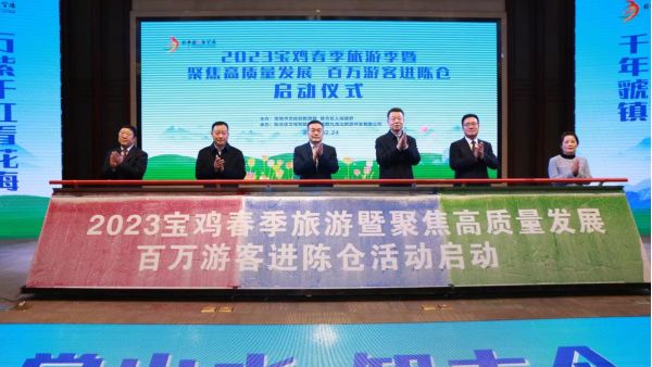來自甘肅、青海、寧夏、四川、重慶、山西、河南等省市400余家旅行社及旅行商代表,寶雞各旅游區(qū)管委會、縣區(qū)文旅局、4A級以上旅游景區(qū)及各旅游協(xié)會負責人,中省市新聞媒體記者共計600余人參會。會上,中共陳倉區(qū)委書記馬霄致辭,市文化和旅游局局長周保君發(fā)布了2023寶雞春季文化旅游季、“引客入寶”、旅游惠民、旅游線路等相關政策信息,陳倉區(qū)人民政府副區(qū)長杜石磊介紹“聚焦高質(zhì)量發(fā)展·百萬游客進陳倉”活動情況,寶雞旅游景區(qū)與旅行社代表簽訂了旅游合作協(xié)議,領導為“百萬活動”進陳倉代表授旗,與會領導共同啟動了活動,儀式由陳倉區(qū)人民政府區(qū)長馬小鋒主持。市政協(xié)副主席張德科出席了啟動活動,陳倉區(qū)區(qū)委、區(qū)人大、區(qū)政府、區(qū)政協(xié)和區(qū)級相關部門主要領導參加了啟動活動。
