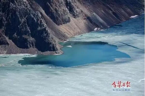 冬季水面結(jié)冰,白雪覆蓋。夏季,冰融化了,湖水變成了藍(lán)色。如今長(zhǎng)白山天池水面破冰融化迎來(lái)“開(kāi)冰期”。開(kāi)冰時(shí)節(jié),湛藍(lán)的天池水與潔白的冰凌形成水波流轉(zhuǎn)、冰花碰撞的奇特美景。