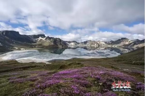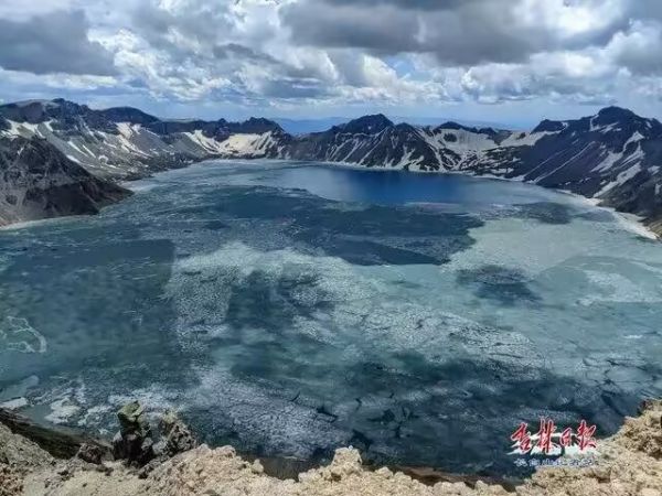 由于今年氣溫偏低,天池開(kāi)冰又屬于“文開(kāi)”,6月16日,冰封半年的長(zhǎng)白山天池正式開(kāi)冰,天池全面融化的時(shí)間在22日,經(jīng)歷了7天的時(shí)間。湖面上的冰層隨著氣溫的升高,逐漸變薄、破碎、融化,猶如美麗的少女揭開(kāi)神秘的面紗。作為一個(gè)獨(dú)特的天氣現(xiàn)象,深受攝影師和廣大游客的喜愛(ài)。