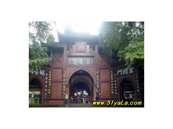 青城主廟——天師洞。相傳東漢末年張道陵曾在此講經傳道,其主殿——三皇殿中供有唐朝石刻三皇,殿內現存歷代石木碑刻,最著名的有:唐玄宗旨書碑、岳飛手書的諸葛亮前后出師表等。出天師洞,過訪寧橋,便到祖師殿,再向北去,可到朝陽洞,出之則直達高臺上的上清宮。上清宮,始建于晉代,現存廟宇為清同治年間所建,上有“天下第五名山”、“青城第一峰”等摩山石刻。