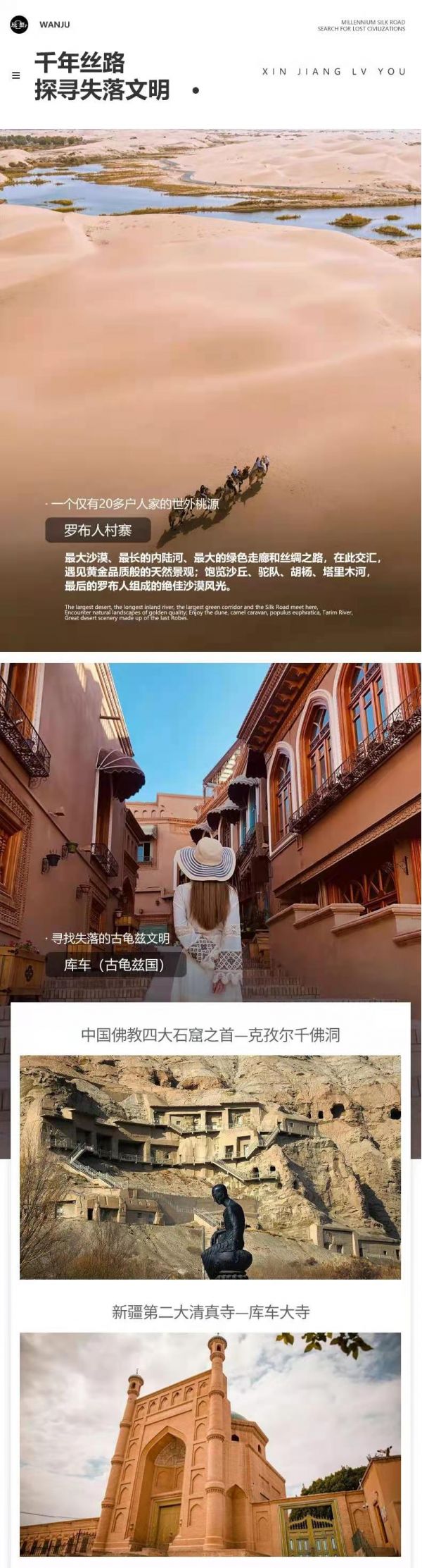 今早我們從烏魯木出發(fā),前往“香梨的故鄉(xiāng)”【庫爾勒市】。沿途車覽有著“中國死?!泵雷u的-十里鹽湖、亞洲最大的風力發(fā)電站--達坂城風力發(fā)電站。在位于塔克拉瑪干沙漠邊緣的羅布泊,我們將遇見一個隱藏的世外桃源——【羅布人村寨】。毗鄰中國最大的沙漠塔克拉瑪干沙漠,最長的內(nèi)陸河塔里木河流經(jīng)此地,最大的原始胡楊林保護區(qū)在這里阻隔風沙,絲綢之路在這里向西延伸,這個古老神秘的村寨坐擁頂級天然景觀。人文景觀同樣引人入勝,這里住著“不種五谷,不牧牲畜,唯以小舟捕魚為食”的最后的羅布人,羅布人是新疆最古老的民族之一;走進村寨,好像進入一座偌大的拍攝古裝歷史影片的影城。沙丘、駝隊、胡楊、塔里木河、羅布人....在此匯聚,絕美沙漠風光在此定格。