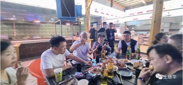 在公路休息區,隨團的女子攝影協會付會長姜曉紅和攝影家彭曉榮請大家在巴音郭楞蒙巴倫臺“好朋友”飯店吃羊肉抓飯。羊肉特別鮮美,沒有膻味。應該做核酸檢測了,現在監測點到處都是。吃完飯發現隔壁正好有核酸檢測點,大家順便做了檢測,后天就要回家了。