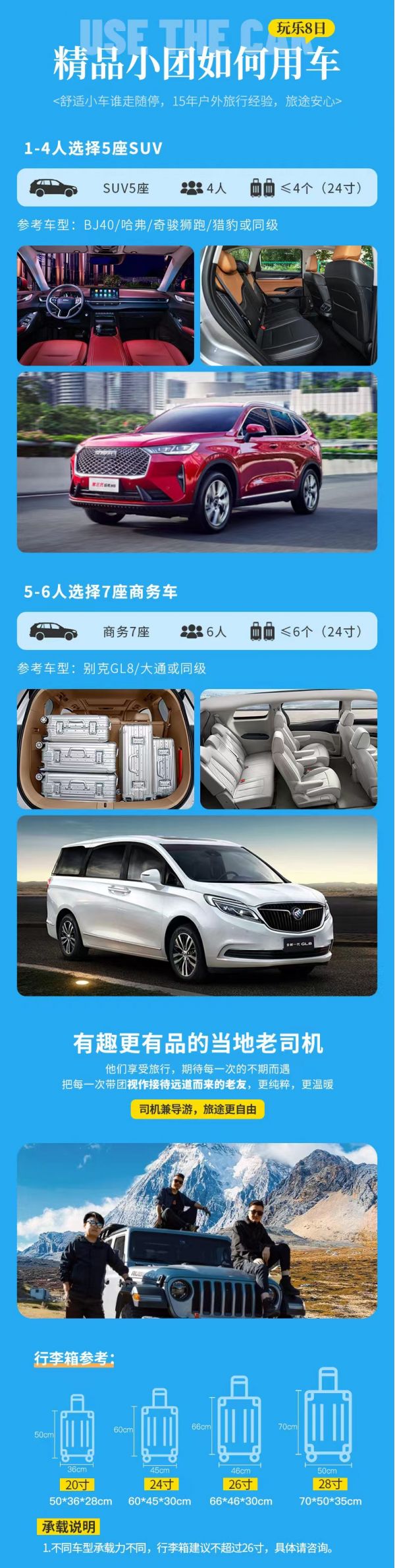 (7)沿途可能出現堵車、修路等不可抗因素導致用餐地點時間不穩定,建議大家提前備好充饑零食。