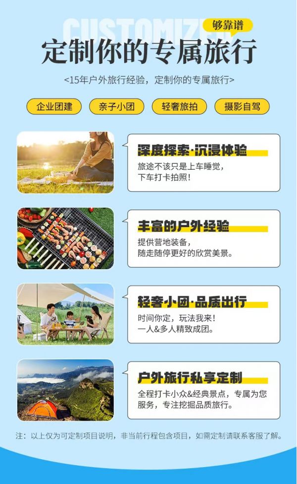 用餐:行程中未包含的餐食自理(建議大家自備零食或AA去體驗當地特色美食小吃);司機全程餐食費用由隊員均攤(按照100元/天餐補計算)。