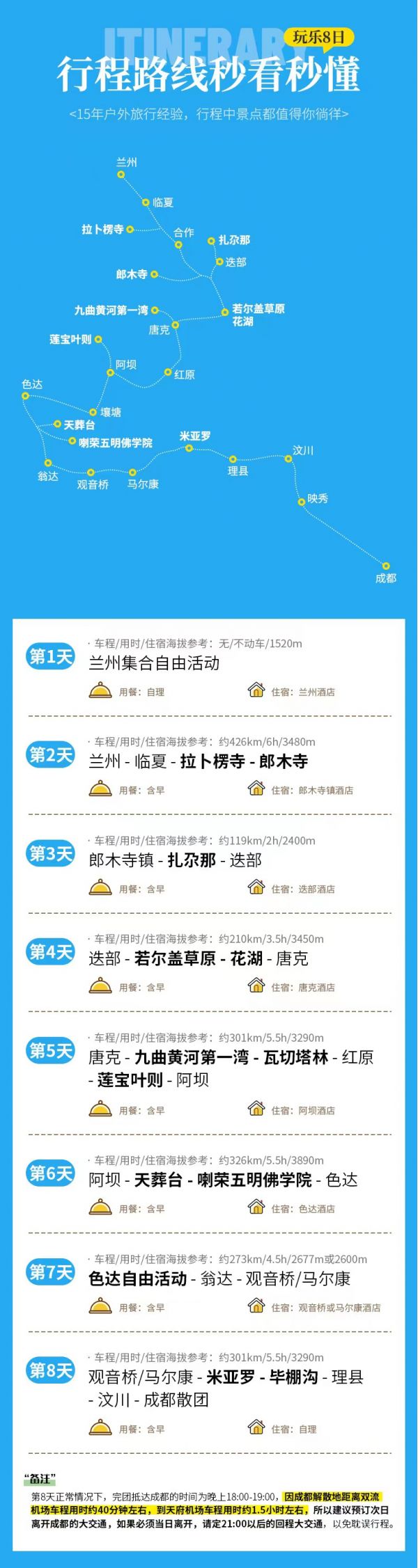 (2)由于川西地區路況復雜,山道狹窄,有可能因為堵車而發生延誤,請大家盡量預定第二天返程的航班或車次。