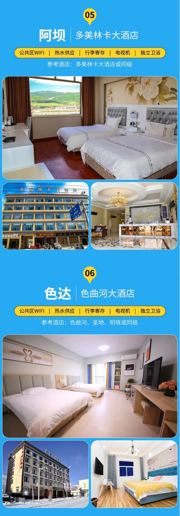 今日我們入住阿壩,如實際情況不允許則會調整入住于久治,入住標準不變,望您諒解。