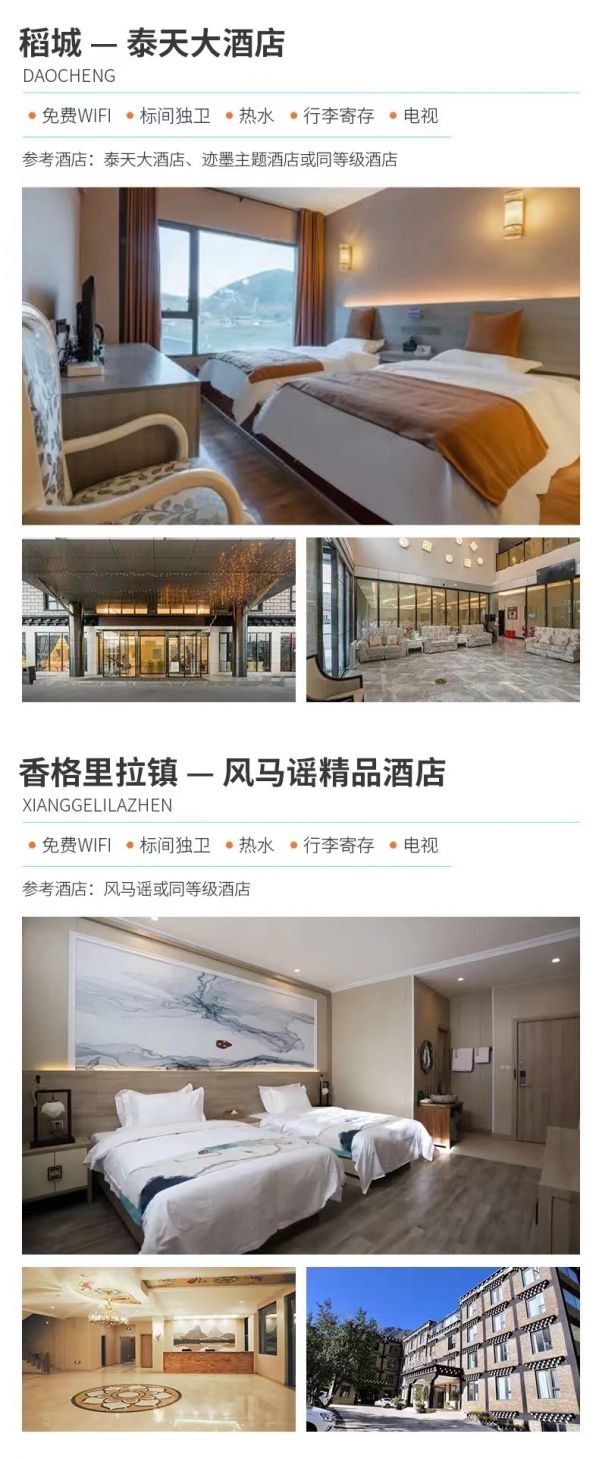 溫馨提示:(1)根據實際情況,稻城和香格里拉鎮酒店安排其一入住。