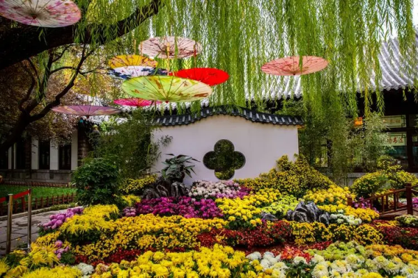 品種菊、盆景菊、懸崖菊、案頭菊、菊花小景、菊花造型……金秋時節的濟南市趵突泉景區里,五顏六色、姿態各異的菊花或含苞待放,或恣意綻放,與亭臺水榭交相輝映,移步易景,宛若畫中一般。