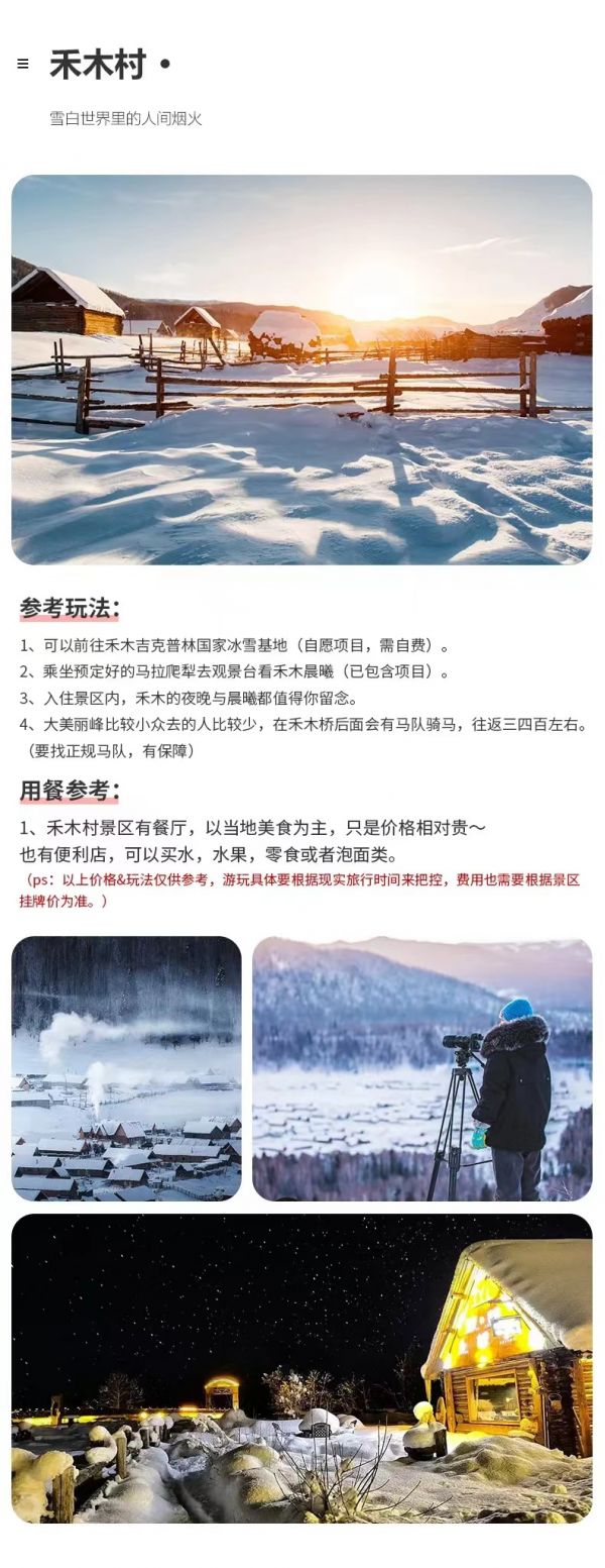 【禾木自由活動推薦,價格僅供參考,以景區公示為準:】