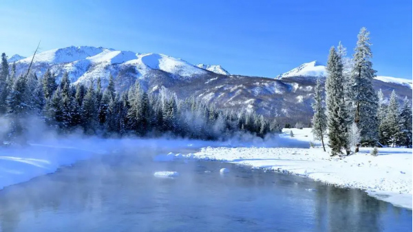 沿喀納斯河一路觀光,欣賞初雪的原始森林風光,前往喀納斯湖邊游覽喀納斯湖美景,喀納斯的湖頭升起陣陣薄霧,仿若仙境。在明凈純澈又安寧的冬日時光中,喀納斯化身為美麗的使者,呈現出一片晶瑩剔透的冰雪樂園。兩岸松樺在薄霧中朗讀著詩人“千山鳥飛絕,萬徑人蹤滅”的詩句,壯美山川河流與夢幻霧凇景致構成一片寧靜的人間凈土,真可謂攝影師的天堂。