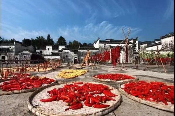 早餐后游覽呈坎八卦村景區。可能大家還不知道呈坎可是曬秋民俗文化的發源地,古徽州的曬秋民俗可以追溯到東漢時期,呈坎是徽州地區保存最完整的千年古村落。每當日出山頭,晨曦映照,整個山間村落飽經滄桑的徽式民居曬場上與曬架上、圓圓曬匾里五彩繽紛豐收果實組合,曬出豐收,曬出喜悅,繪就出世界獨一無二的農俗景觀。