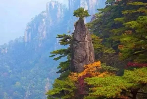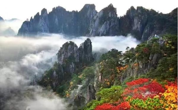 黃山“黃山歸來(lái)不看岳”,這是吸引眾多游客登黃山賞美景的一大理由。這個(gè)季節(jié),如畫的秋色為黃山平添了幾份秀美。黃山的秋天來(lái)得早,到了10月,黃山的月平均氣溫只有11.7℃。黃山的秋季,別有種種勝景,明代大旅行家徐霞客曾贊美黃山秋色“楓林相間,五色紛披,燦若圖繡”。仰望天空,黃山的天湛藍(lán)如洗,入了秋更顯得高遠(yuǎn),空曠無(wú)邊、萬(wàn)里無(wú)云,更無(wú)一絲雜質(zhì),像一塊覆蓋大地的藍(lán)寶石。秋用赤、橙、黃、綠、青、藍(lán)、紫七色神筆把黃山描繪得色彩斑斕,濃墨重彩地勾勒燦若圖繡的世界,遠(yuǎn)峰近松,到處充滿了秋色的誘惑,讓人難以抗拒。
