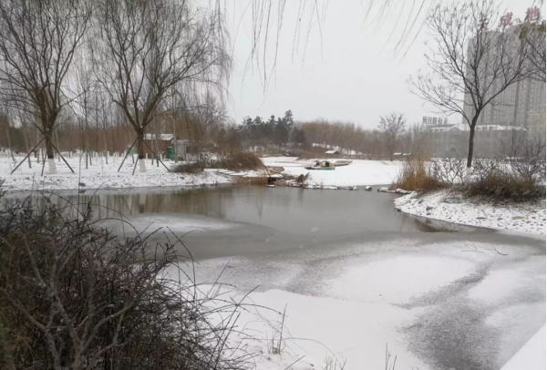 11月10日晚8點50分,山東省聊城市降下今冬第一場雪