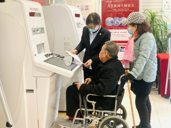 結合老年人實際需求配置愛心座椅、老花鏡、輪椅、急救藥箱、無障礙坡道或無障礙臨時坡道等助老便民設施。同時,設置“綠色通道”,為有困難、有需要的老年客戶提供業務優先辦理綠色通道,減少等待時間。大堂經理在招迎、引導、答疑等流程始終做到主動熱情、耐心細致。尤其是,注重對老年客戶指導和幫助,保障老年客戶在網點安全、順利、快捷地辦理業務,讓老年客戶感受到更多關懷。