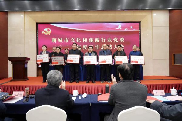 會上,聊城市文化和旅游行業黨委副書記王金福宣讀市文化和旅游行業黨委《關于表揚 2023年度聊城市文化和旅游行業黨委先進工作單位和先進工作個人的決定》,領導嘉賓為獲獎代表頒獎,受表揚的先進集體和先進個人代表分別作了交流發言。