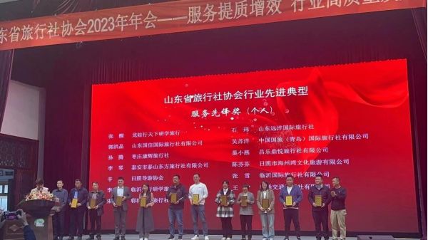 會(huì)上,對(duì)榮獲2023年度山東省旅行社行業(yè)先進(jìn)典型的107家單位和個(gè)人予以表彰,對(duì)山東省“沿著黃河遇見(jiàn)海”旅游線路產(chǎn)品設(shè)計(jì)大賽獲獎(jiǎng)?wù)哂枰宰C書(shū)和現(xiàn)金獎(jiǎng)勵(lì)。