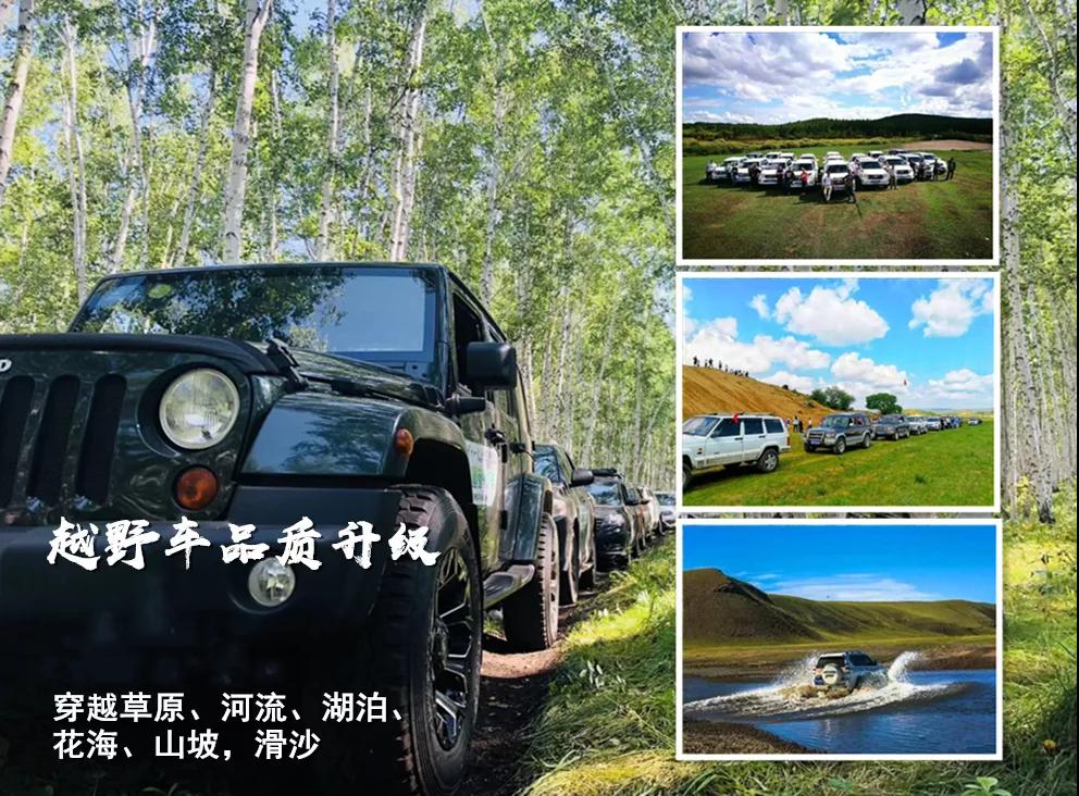 上午:早餐后【土里根河深度漂流45分鐘】然后自費自愿參加【越野車穿越】 ,穿越草原 湖泊 河流,滑沙、瑪瑙山尋寶、觀九曲十八彎。從中國馬鎮至御道口,全長180公里,沿途包含森林、草原、湖泊、濕地、山地等多種自然景觀多樣。