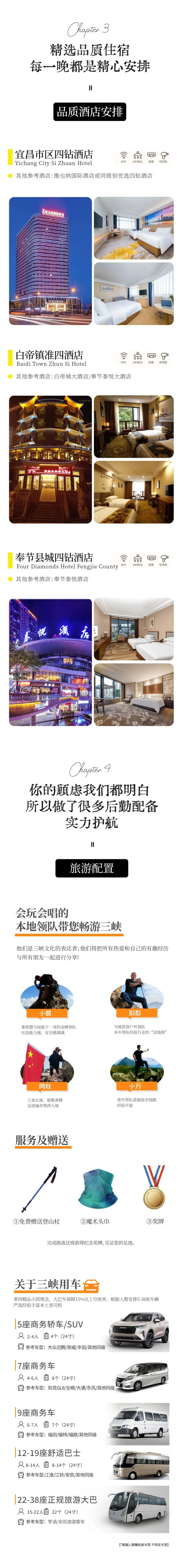 A:本次活動提供接機接站服務,領隊會至少提前3天發(fā)出行前通知給您,最后一天回到宜昌東站解散,大約9點左右,需要預定酒店的友友,可提前聯(lián)系客服