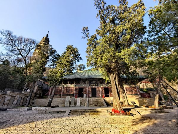 穿過千佛殿,辟支塔的身影在蒼松翠柏間傲然挺立。這座11層的樓閣式磚塔高約54米,塔身雕飾精美,每層都有錯(cuò)落有致的門窗和欄桿,塔頂?shù)南噍唽毶w在陽光下熠熠生輝。