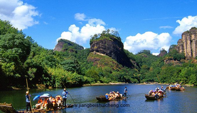 推薦理由:有九曲、三十六峰、七十二景、一百零八洞之奇,盛夏,山外暑氣逼人,山中卻有“靜聽水聲真活潑,飽看山色自清涼”的感覺。武夷的秀在山。大王峰巍峨,玉女峰秀麗;武夷的靈在水。九曲溪從西向東,蜿蜒自如,灣灣藏佳景;青龍瀑布氣勢恢宏,峽谷幽靜。平靜處如翡翠朦朧,飛瀉時如銀龍飛舞。武夷的名在茶。三十六峰、九十九巖,巖巖有茶,茶以巖名,巖以茶顯。