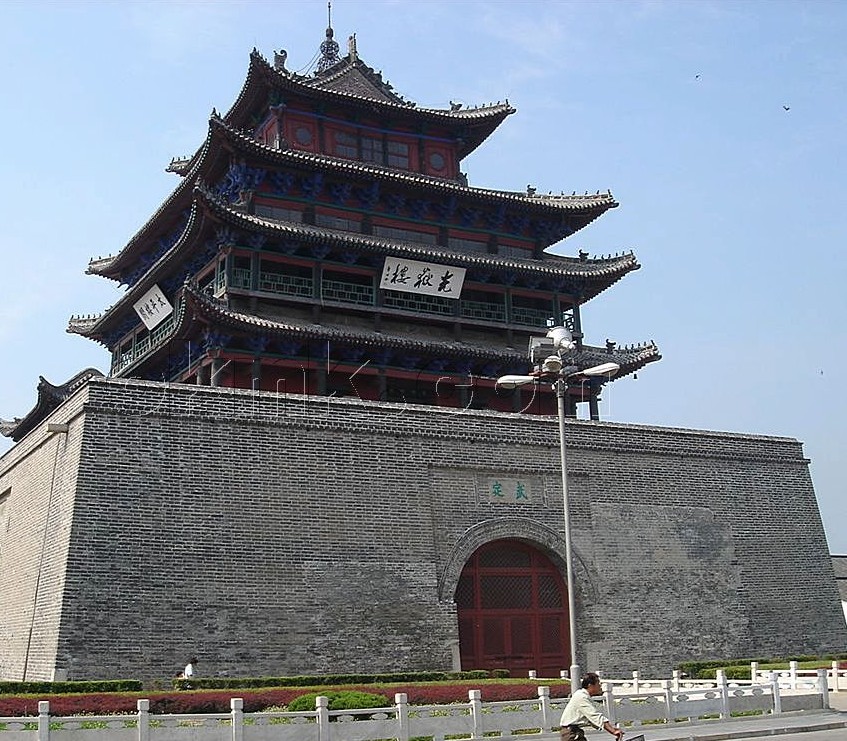 這是一個原版的中國名樓,不像其他幾座樓都被毀后重修甚至重建(從這一點上說明,光岳樓是多么的結實,多么的經得起風吹雨打啊)。關于樓的來歷,有兩種說法:一說元朝時修建北京城從大運河運木料,最后一批原木到達東昌府時,紫禁城已經建造成功,版權聊城聊之旅旅行社所有,轉載必究!東昌知府就把這些剩余的木頭建了一座樓。因為是用造紫禁城剩下的木頭建造的,所以叫余木樓,后改稱光岳樓。這些原木都是從當時的蘇祿國,也就是菲律賓進口的,質量非常好。還有一種說法是,明朝洪武二年(公元1369年)東昌衛守指揮僉事陳鏞為加強軍事防御能力,將宋熙寧三年所筑土城改建為磚城,用修城的剩余木料在城中心建立一座更鼓樓,初名“余木樓”,明成化二十二年(公元1486年)重修時又因地而名“東昌樓”。明弘治九年(公元1496年),“取其近魯有光于岱頂之意”,命名為光岳樓。