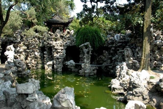 夏景:疊石以青灰色太湖石為主,疊石似云翻霧卷之態(tài),造園者利用太湖石的凹凸不平和瘦、透、漏、皺的特性,疊石多而不亂,遠(yuǎn)觀舒卷流暢,巧如云、如奇峰;近視則玲瓏剔透,似峰巒、似洞穴。山上古柏,枝葉蔥郁,頗具蒼翠之感;山下有池塘,池中游魚嬉戲穿梭于睡蓮之間,靜中有動(dòng),極富情趣。池塘右側(cè)有一曲橋直達(dá)夏山的洞穴,洞之幽深,頗具寒意,即使炎熱的夏天,人們步入洞中,頓覺清爽。