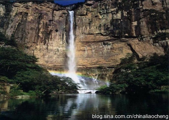 八里溝大瀑布落差158米,瀑口寬20余米,咆哮奔騰,聲聞數里,霧雨彌漫,上有七色彩虹飛跨,下有水簾溶洞橫穿,鐘乳倒掛,鐘筍林立,水霧蒙蒙,珠沫四濺,奇瑰迷人,號稱“亞洲第一瀑”。