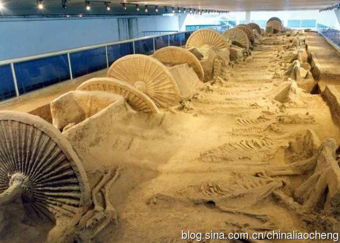 春秋殉馬坑殉戰車10輛,馬32匹版權所有聊城聊之旅國際旅行社有限公司,轉載必究!,規模之大,配套之齊全,馬飾之精美,為當代中國之冠,列中國十大考古發現之一。古車陳列展廳陳列后李車馬坑出土的各類車和臨淄地區出土的古代車的復原車,直至中國出土的各類古代車復原車。集中國古車研究成果之大成,薈華夏歷代車乘珍品之精萃,充分展示了中國車乘的悠久歷史和造車技術曾在世界車輛發展史上的領先地位。