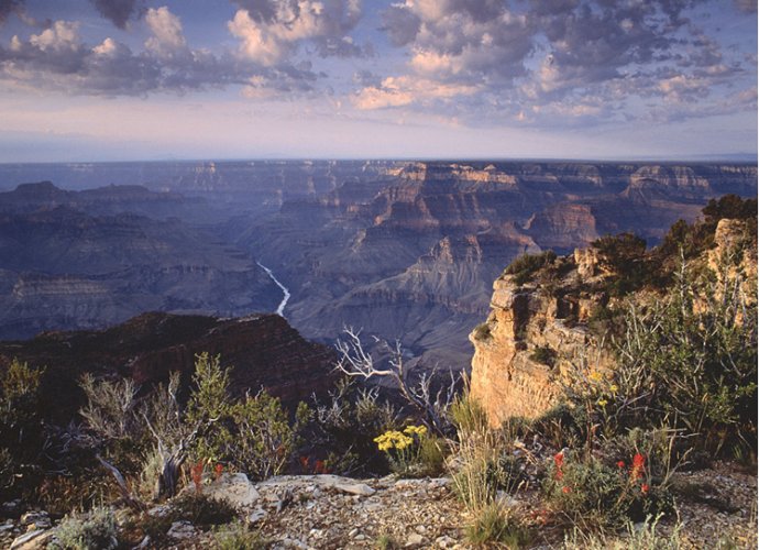 在大峽谷國家公園的電影院里,有世界最大的銀幕,詮釋著大峽谷的歷史和變遷。億萬年前,這里也同喜馬拉雅山一樣,曾是一片汪洋大海,造山運動使它崛起。然而由于石質松軟,經過數百萬年湍急的科羅拉多河的沖刷,兩岸巖壁被摩擦切割成今天全長近400公里、寬約20公里、平均深度1500米的世界著名大峽谷。