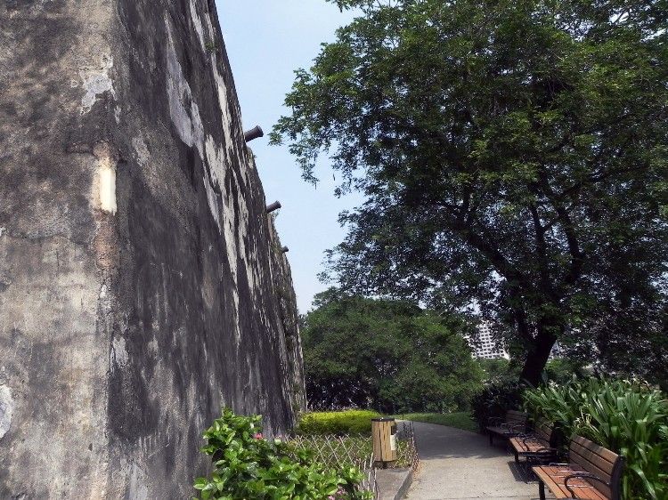 炮臺占地約一萬平方米,呈不規則四邊形,版權所有山東聊城聊之旅國際旅行社有限公司,轉載必究!邊長均約為100米,四個墻角外突成為棱堡,炮臺東北、西南及東南面墻身建基于3.7 米寬的花崗石基礎上,墻身以夯土砌建,并以蠔殼粉末作灰泥批蕩,堅實非常,墻高約9 米,往上收窄成2.7 米寬。女兒墻高約2 米,成雉堞狀,可架設多達32門大炮,以防范來自此兩方向之攻擊。東南墻兩角更設有碉堡。面向中國大陸的西北墻身,主要以花崗石砌筑,女兒墻較矮且沒有炮口設置,這主要顯示其對海外的防御作用以及對當時中國官方的友好姿態。