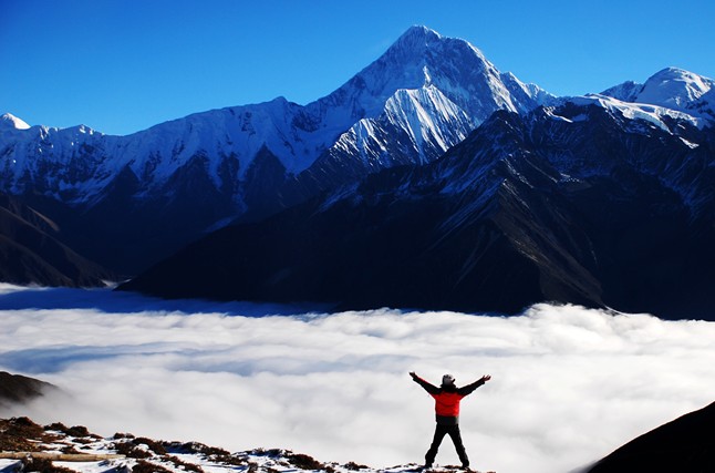 貢嘎山峰的高峻,遠非內(nèi)地一般名山可比。登臨其上后,放眼望去,萬里銀白的雪域匍匐在山下,遼闊的視野和由山體的高度而產(chǎn)生的登山成就感絕對值得一攀。由于其海拔非一般山峰可比,因此要求登山者作足充分準備,以免因勞累和寒冷導(dǎo)致半途而廢。登山者多從西北山脊路線登頂,這也是前人總結(jié)下來的經(jīng)驗。