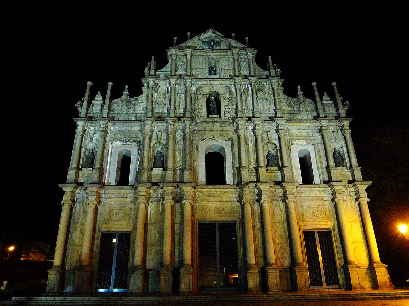 大三巴牌坊(Ruins of St.Paul),是澳門最具代表性的名勝古跡,為1580年竣工的圣保祿大教堂的前壁,此教堂糅合了歐洲文藝復(fù)興時(shí)期與東方建筑的風(fēng)格而成,體現(xiàn)出東西藝術(shù)的交融。雕刻精細(xì),巍峨壯觀。