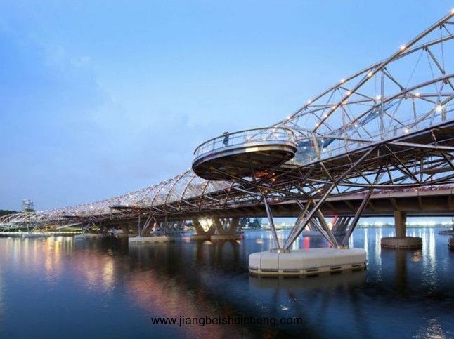 雙螺旋橋本身就是新加坡在濱海灣地區(qū)的發(fā)展目標。與前灣公路橋平行,螺旋橋將前灣地區(qū)的濱海中心和濱海南區(qū)連接起來。形成了一個將頂級景觀與商務金融中心渾然一體的大型開發(fā)項目。
