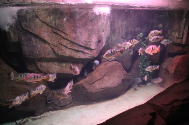 奇石怪狀的石頭旁,五顏六色的小魚在自由自在的有著,讓這幅畫面充滿了和諧感,愜意感。