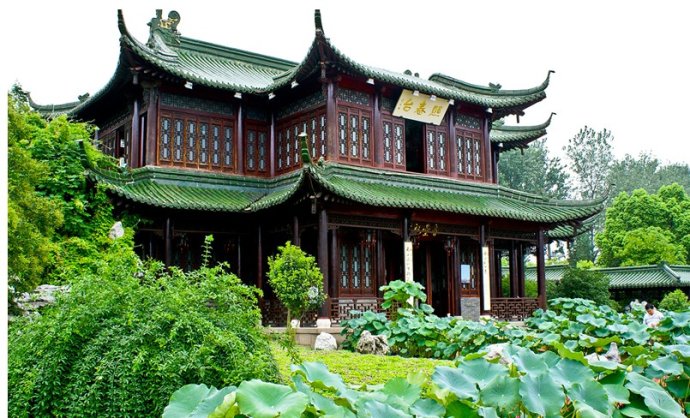 長堤的盡頭便是“徐園”徐園中有一館、一榭、一亭,外有曲水,內有池塘,花木竹石,恰到好處,充分體現(xiàn)了江南園林的精巧雅致。